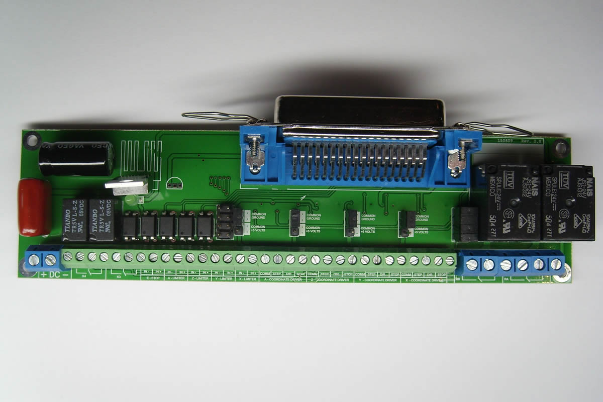 Плата предназначена для организации системы ЧПУ, позволяет подключать до четырех драйверов шаговых или серводвигателей к компьютеру через LPT-порт.