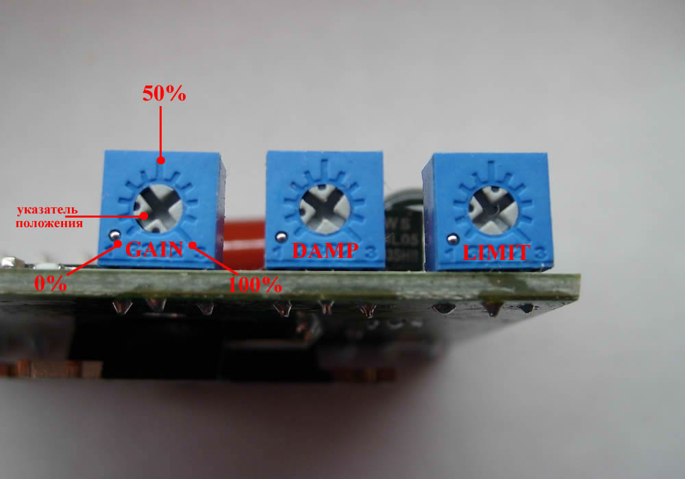 Регуляторы усиления и демпфирования GAIN и DAMP взаимосвязаны друг с другом. Если Вы увеличиваете регулятор GAIN, необходимо увеличивать регулятор DAMP, чтобы установить критическое демпфирование.
